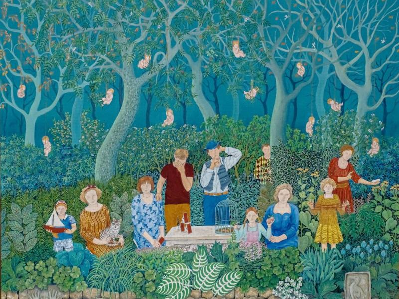 Det poetiske og drømmende kendetegner hendes værker, hvor virkelighed og fantasi smelter sammen i et univers af mennesker, dyr og genstande – døre, heste, labyrinter, æbler, fugle og masker – alle med symbolsk betydning.